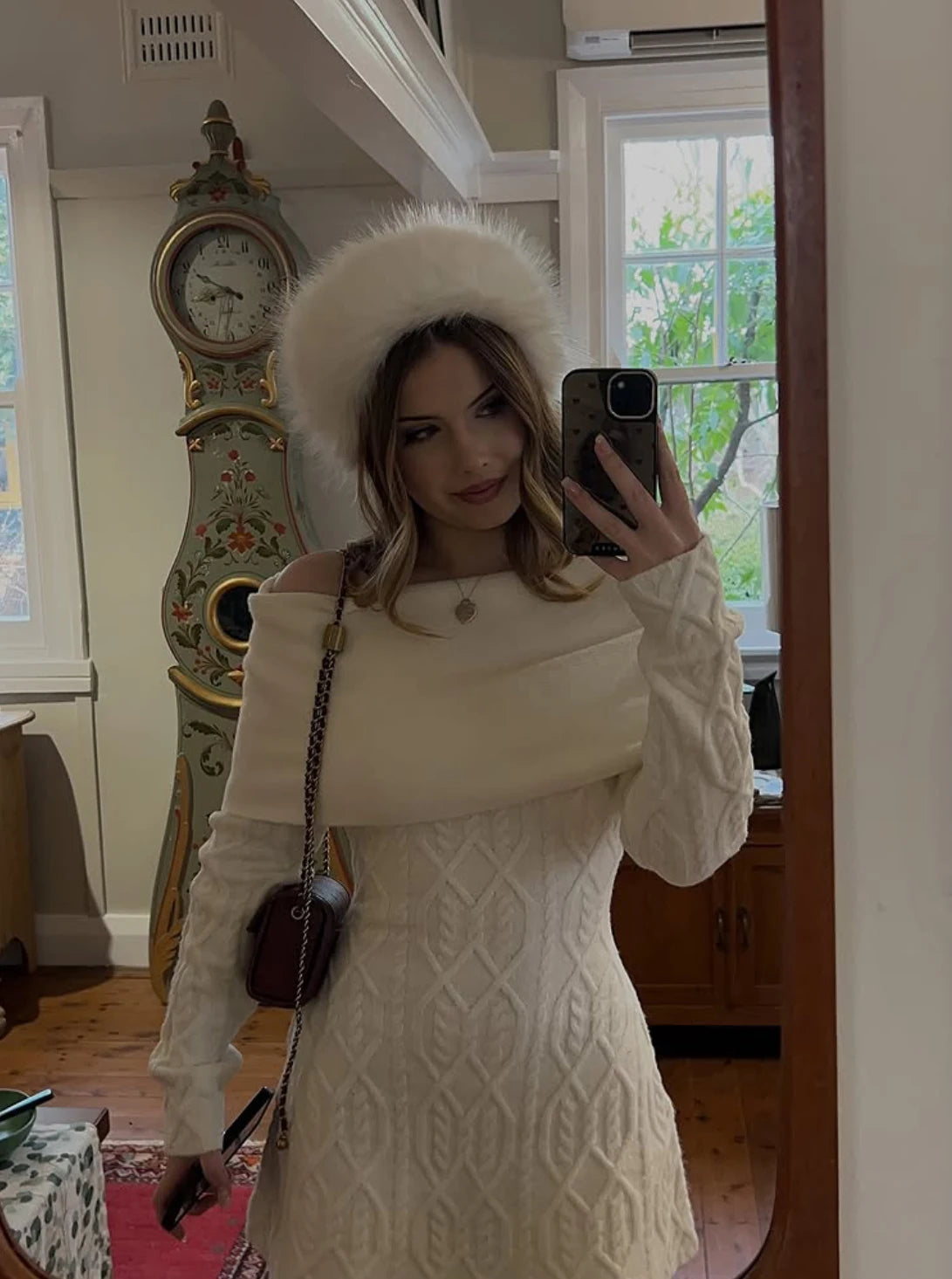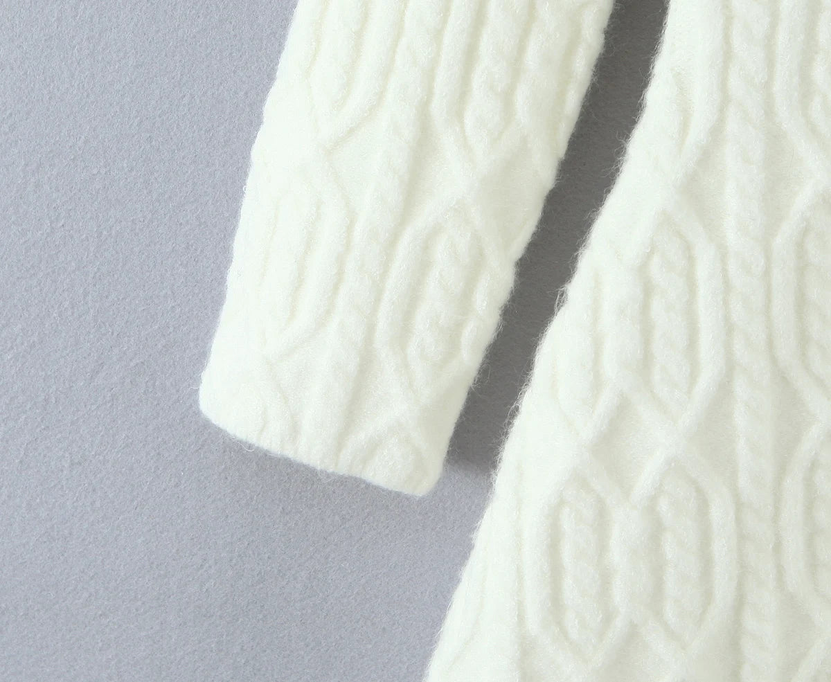 Knitted Solid Full Sleeve Striped Slash Neck Mini Dress