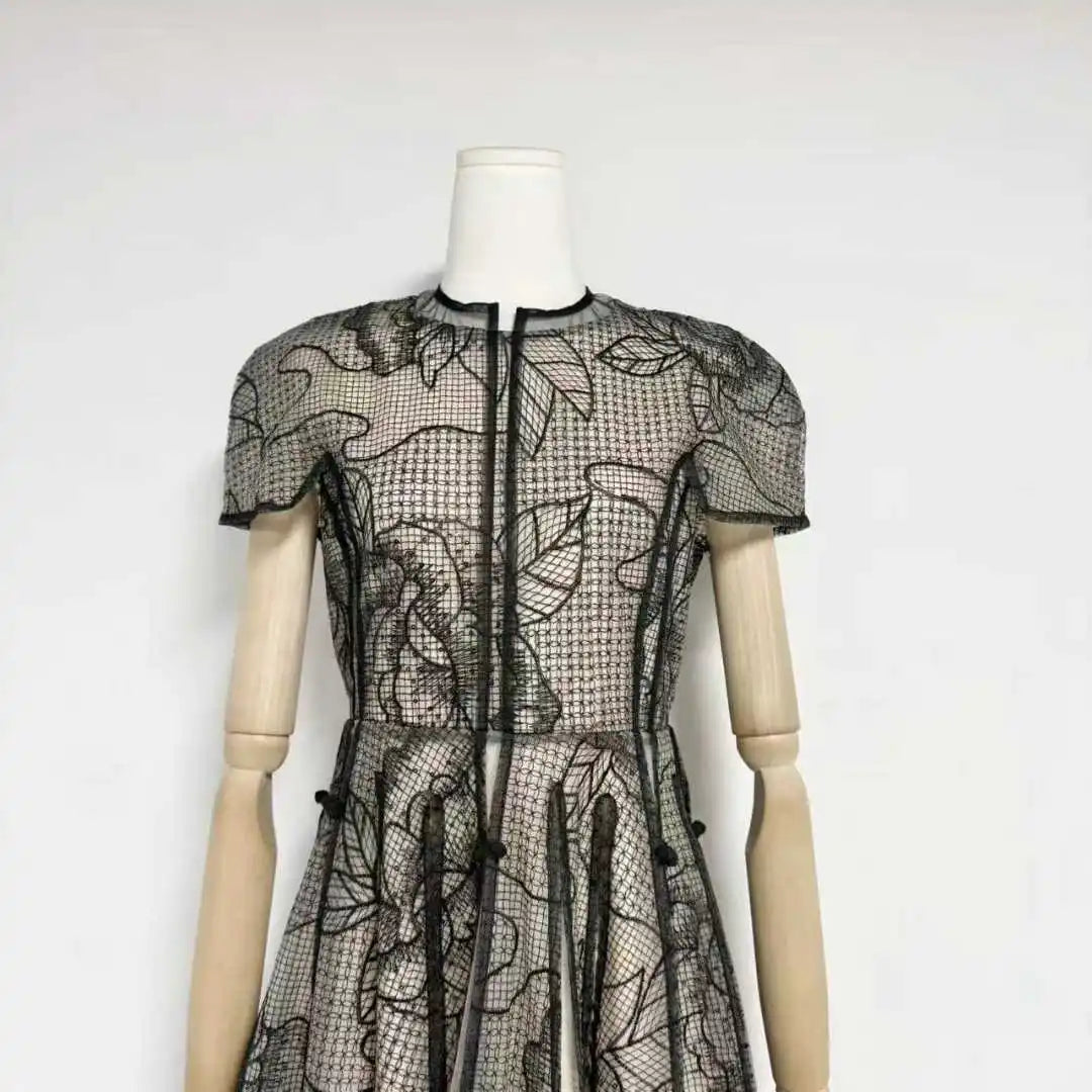 - 🖤 Intricate Floral Lace Embroidery: Detailed black floral and leaf patterns overlay sheer mesh for a luxurious, textured look.