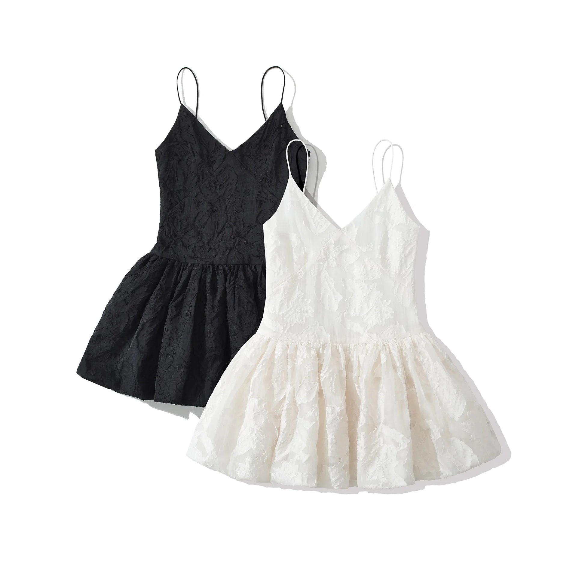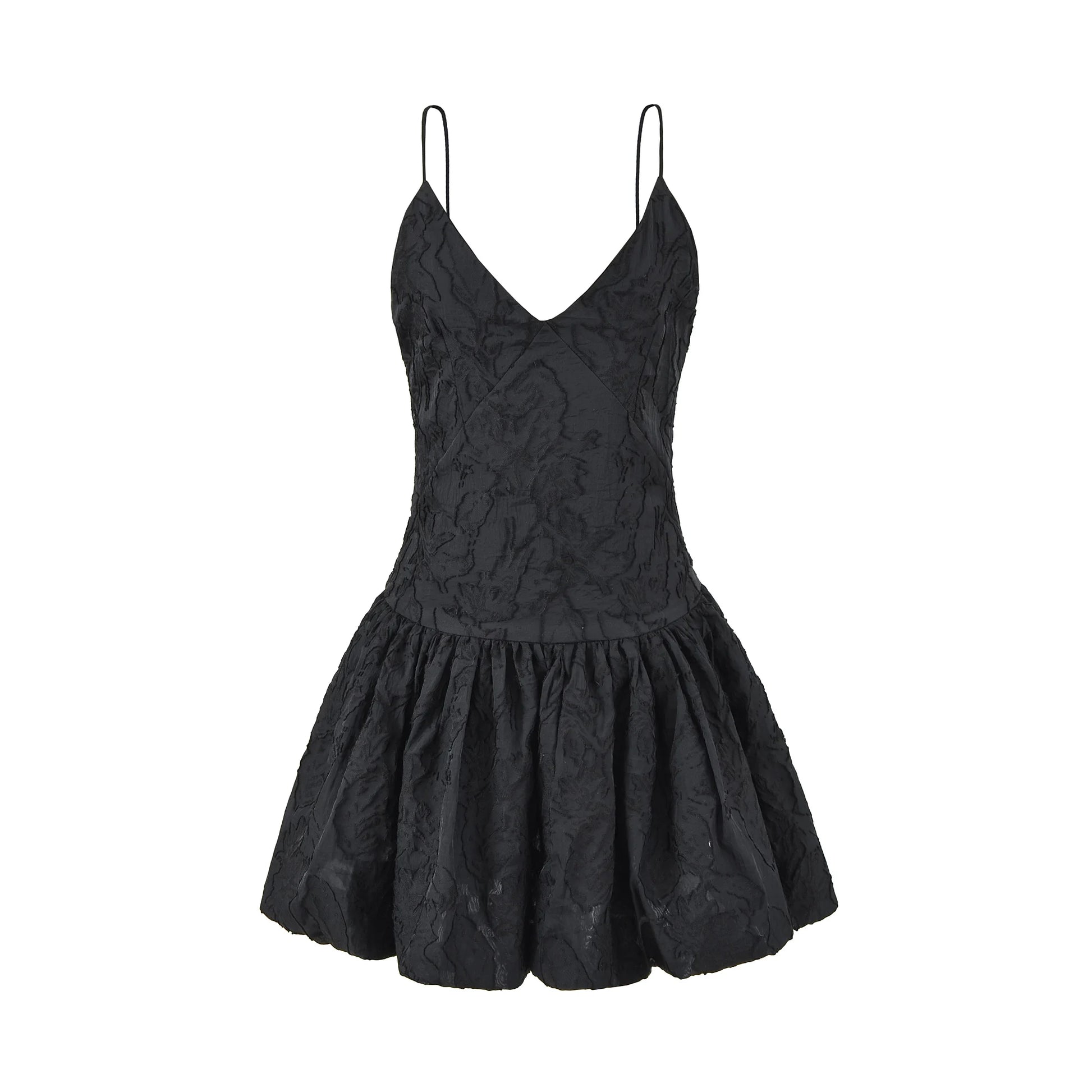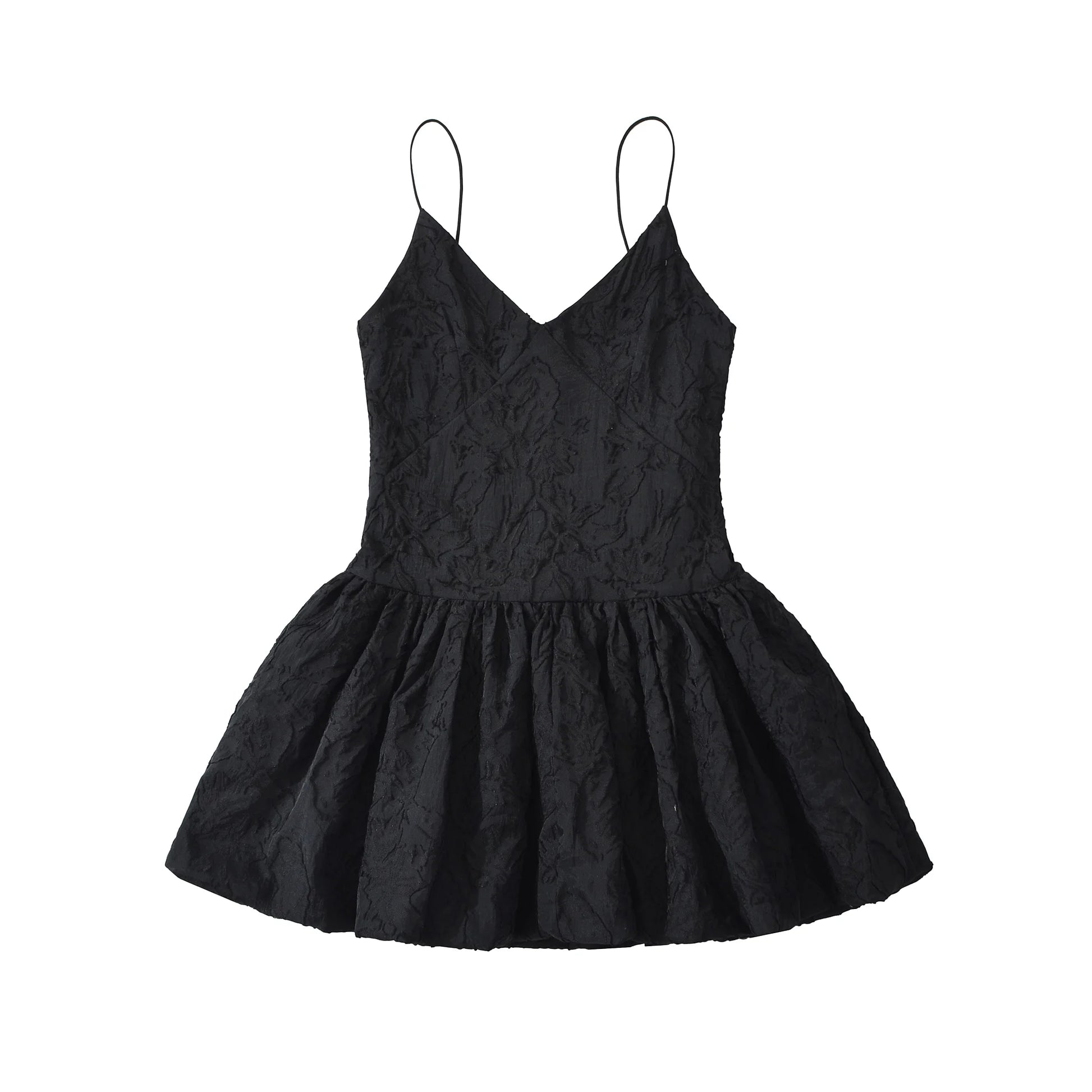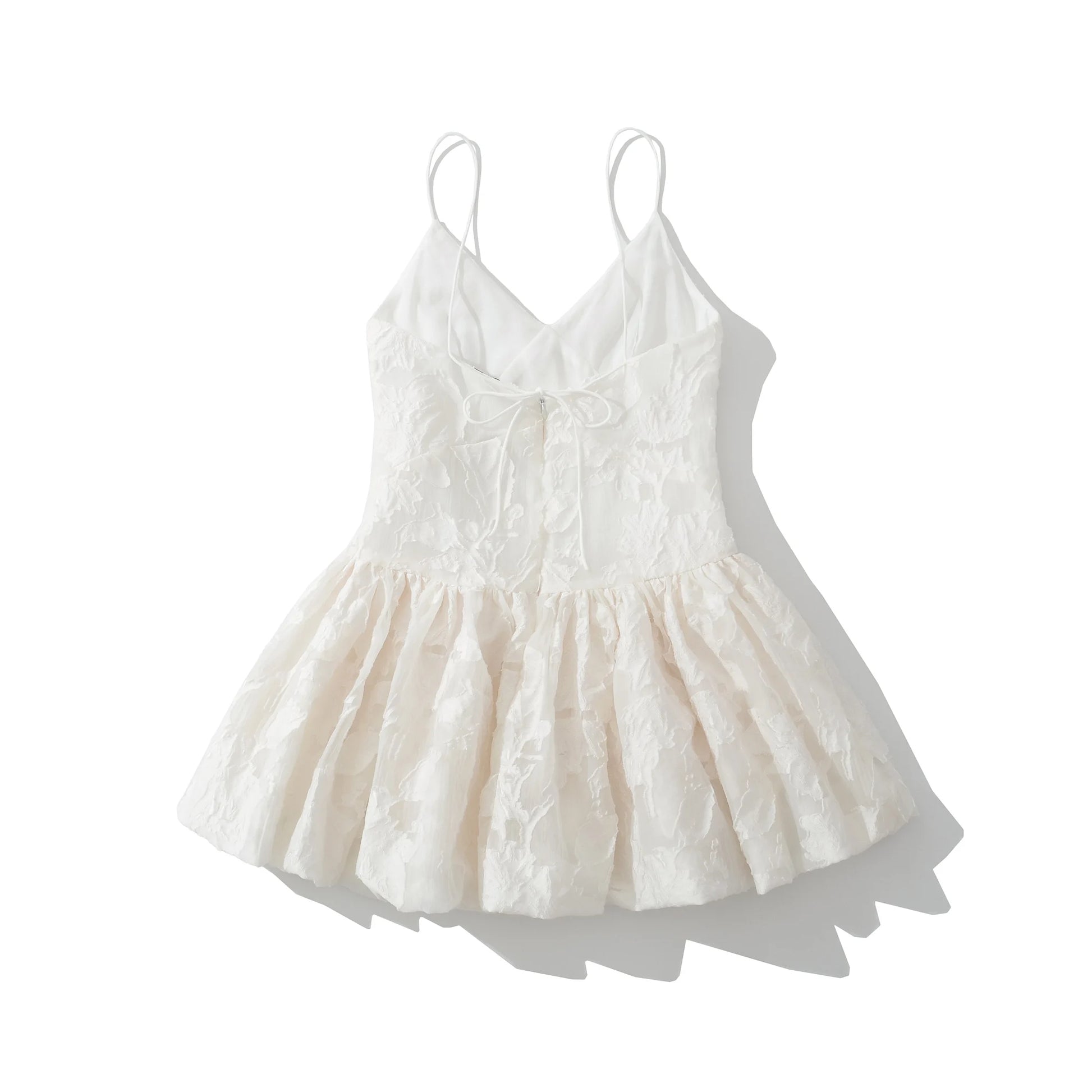 3. Features: V neck, thin adjustable spaghetti straps, 3D floral textured fabric, bubble hem, backless design, mini length