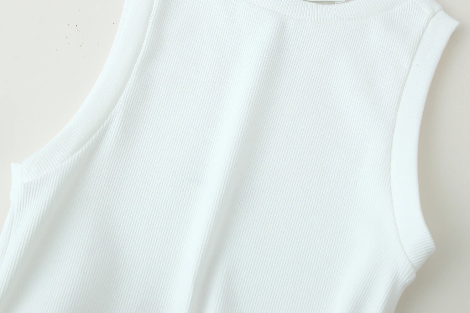 - ✨ 2-in-1 Construction: Fitted white ribbed knit tank top + flowy beige chiffon maxi skirt, seamless one-piece design.