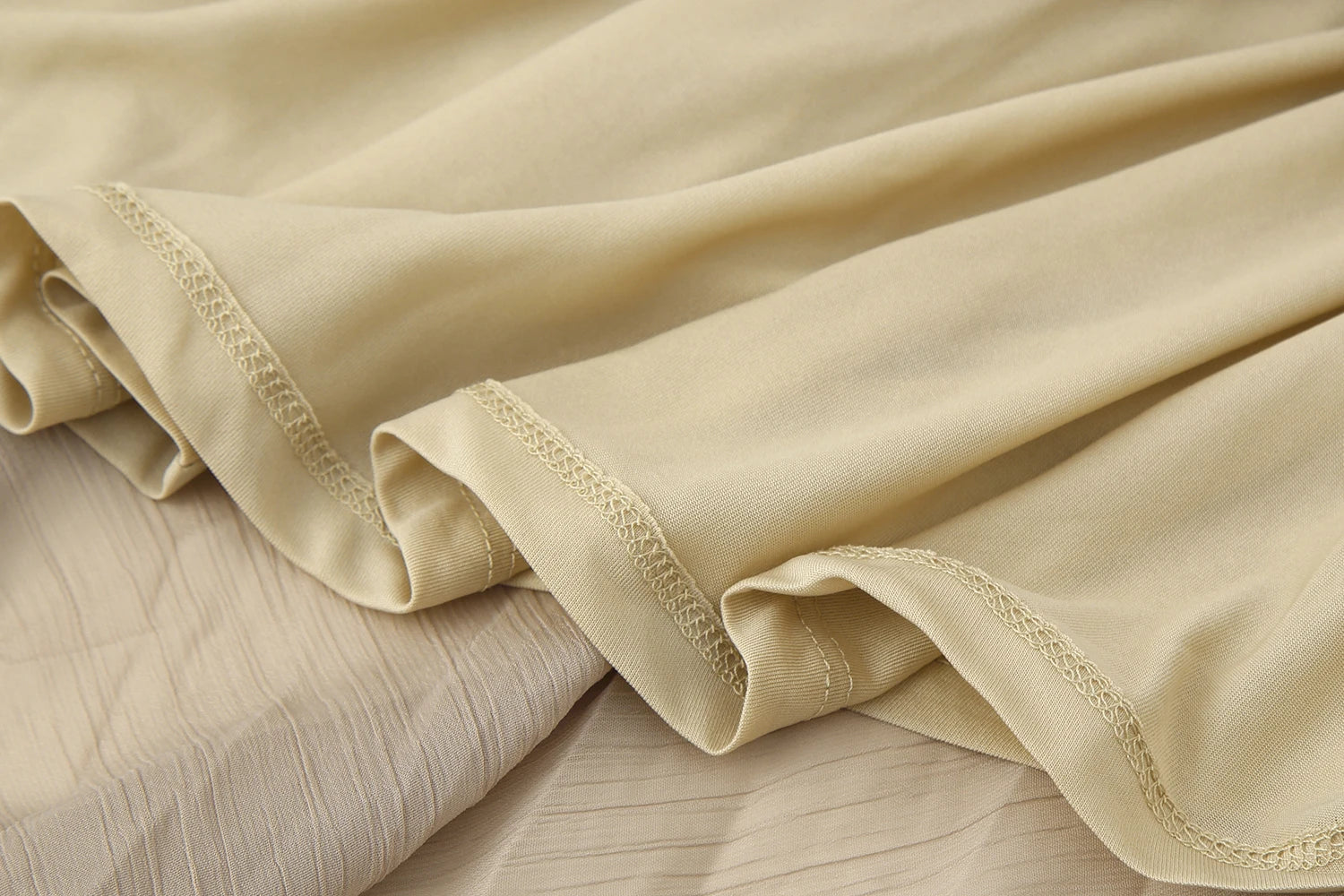 2. Material: Chiffon Crepe + Stretch Knit | Color: White & Khaki | Weight: 0.45kg